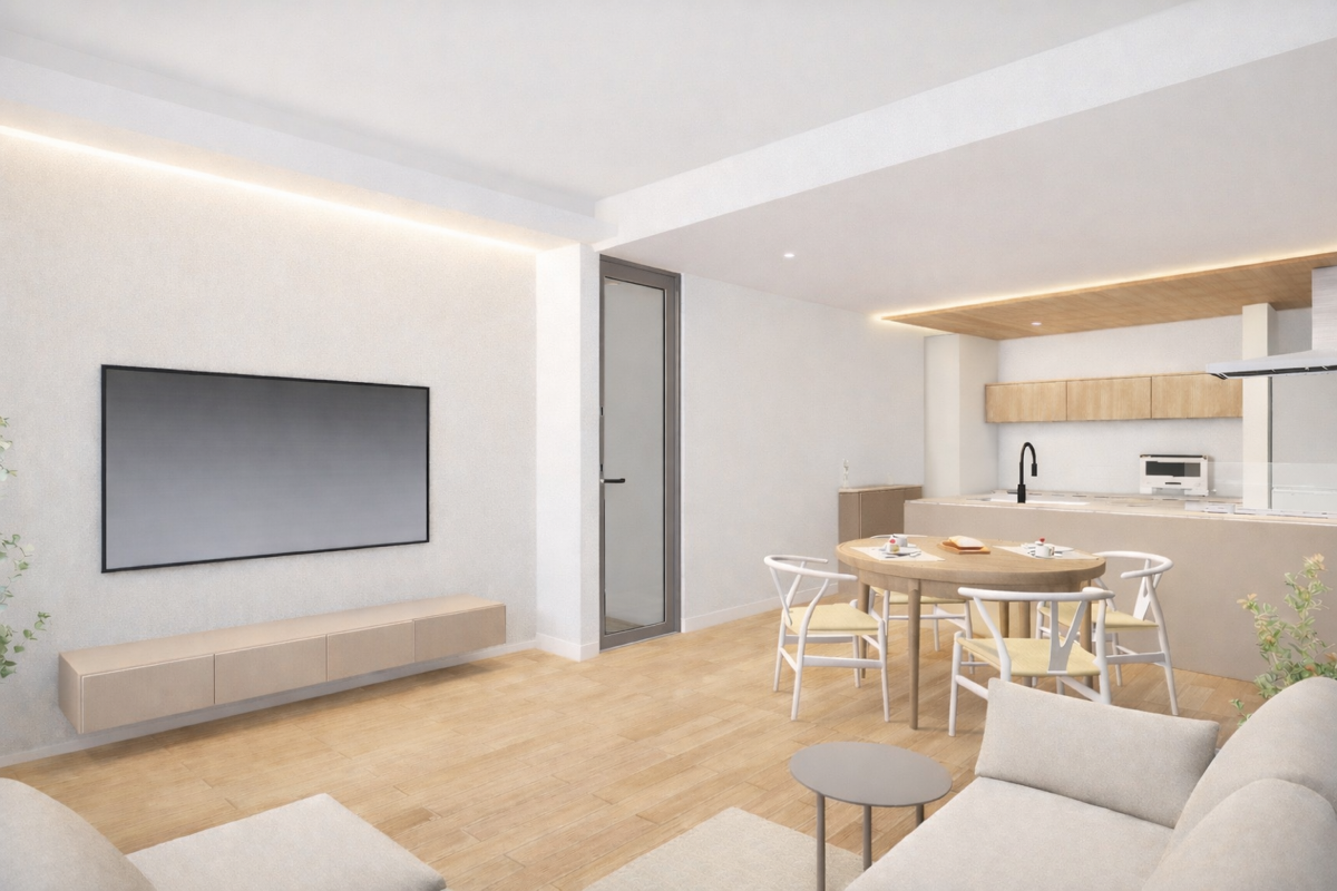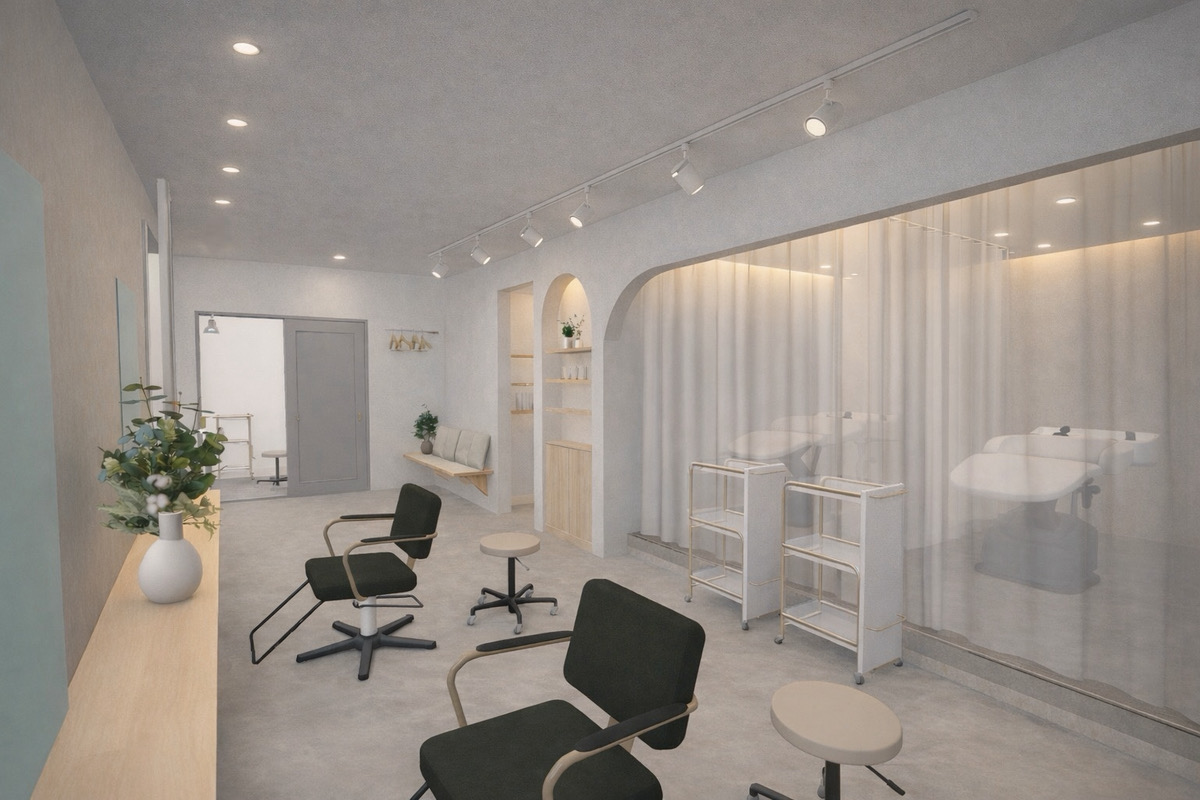 42坪という限られた延床面積の中で、店舗エリアに14坪を割き、あえて「広さ」を優先。お客様に非日常を提供するサロン空間と、家族4人が効率的に、かつゆったり過ごせる28坪の居住スペース。その絶妙な間取りの工夫を体感してください。
